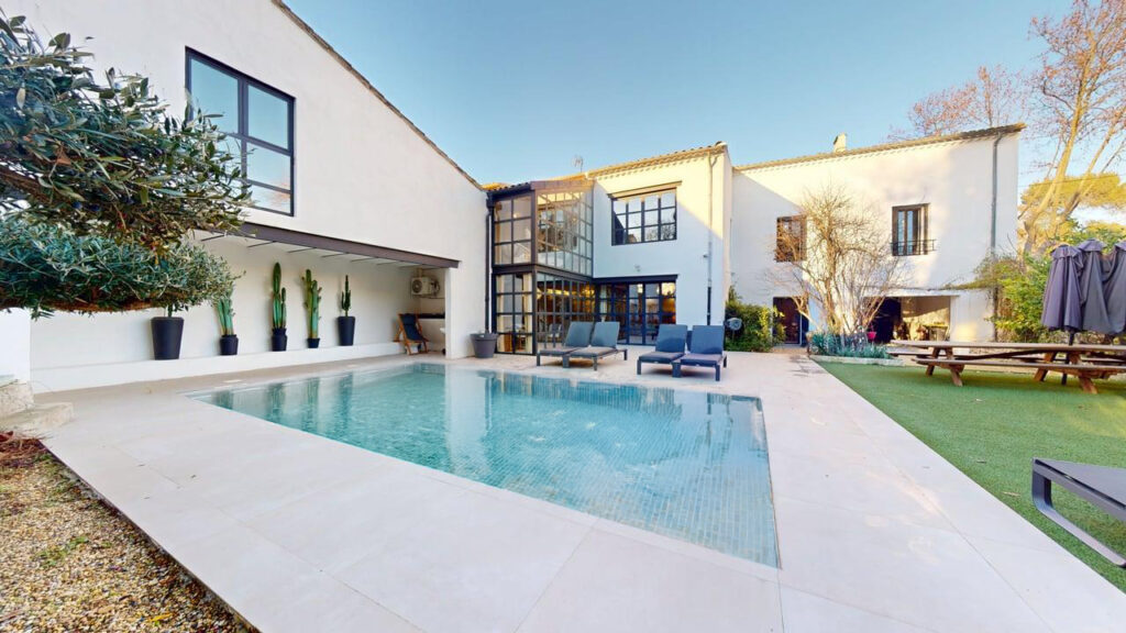 Piscine 9×4 m, jardin de 1 000 m² et salle de sport créent une vraie parenthèse pour vos invités : pause sportive, baignade, moment au calme… Un cadre propice aux échanges comme au repos.